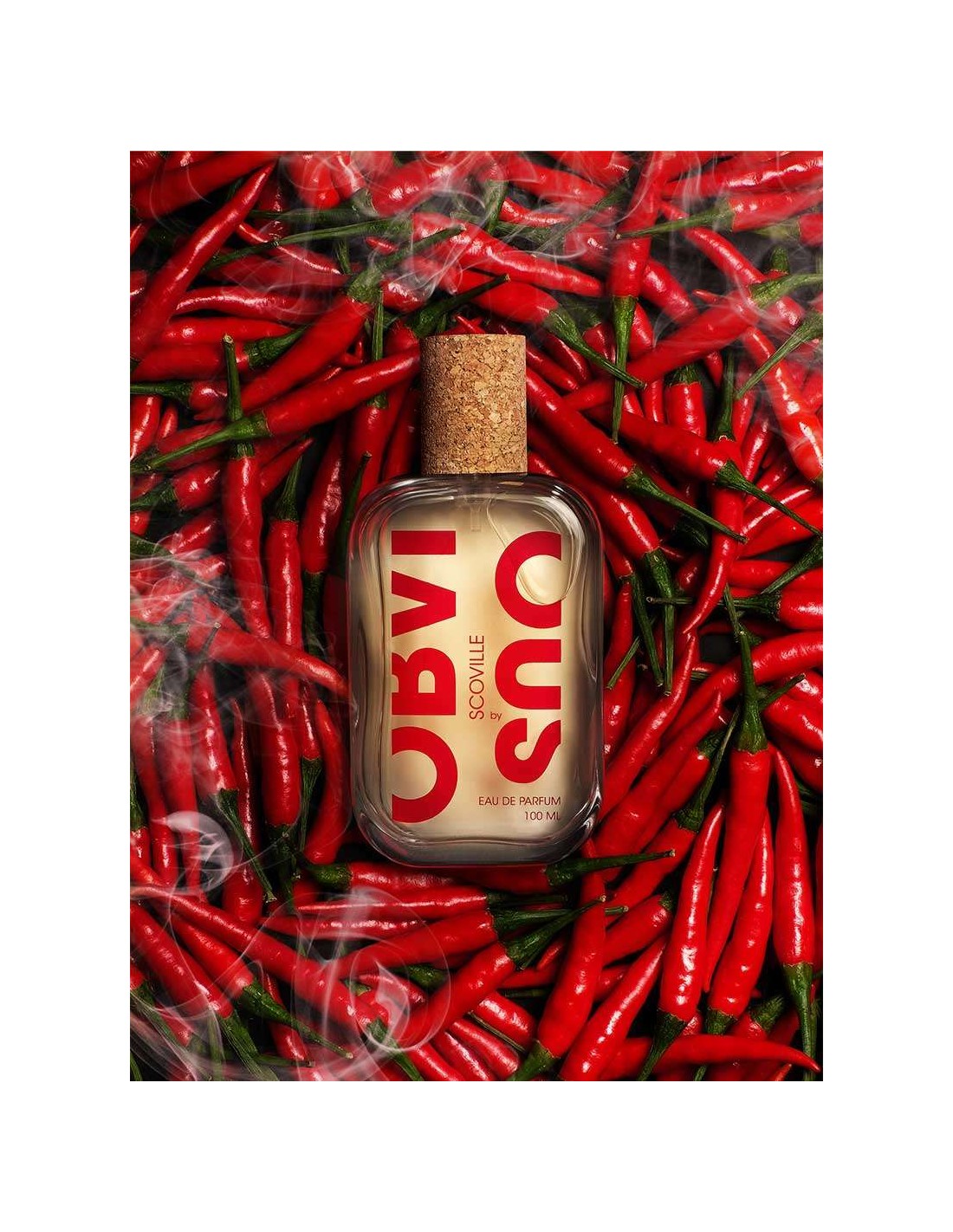 Scoville by Obvious est un parfum frais, épicé et boisé au profil hautement addictif. Le piment est travaillé sous toutes ses coutures : croquant, séché, incandescent. L’essence de Piri Piri Amour apporte une intensité épicée et ambrée, arrondie par son fond vanillé et des muscs chauds.